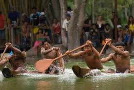 A canoagem é também uma prática tradicional e está presente no cotidiano das populações indígenas do amazonas.
